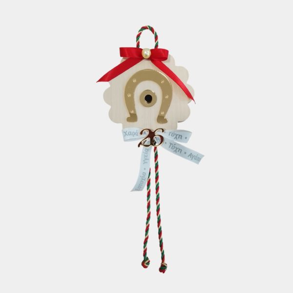 Χειροποίητο γούρι “πέταλο” κρεμαστό, κατασκευασμένο από κόντρα πλακέ 6 χιλιοστών και χρυσό καθρέφτη ασφαλείας (πλέξιγκλας). Διάμετρος 8 εκατοστά. Επιλέξτε χρωματισμό διακόσμησης.