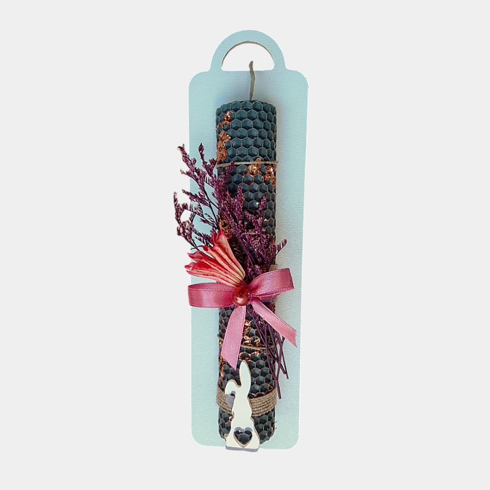 Λαμπάδα μελισσοκέρι γκρι με φύλλο χρυσού